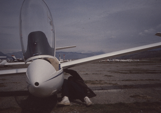 Klaus, Otti und Rolf waren 1992 zum Segelfliegen mit der ASK21 (PM) und der LS4 (TM) in Sisteron (in den französichen Seealpen).