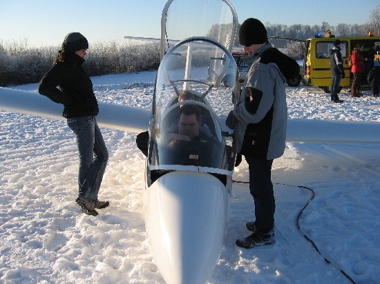 Wir fliegen nicht nur im Winter - nein sogar auch im Schnee. Nur selten haben wir die Gelegenheit zu Fliegen wenn Schnee liegt, der Boden gefroren ist und schönes Wetter herrscht. Heute (10.01.) war es nach vielen Jahren endlich wieder soweit. Die Sicht war phantastisch und es hat allen großen Spaß gemacht.